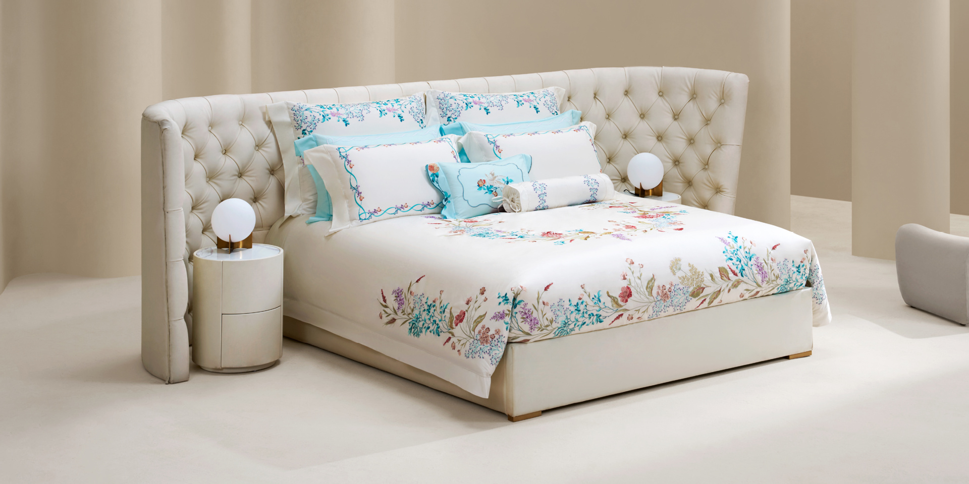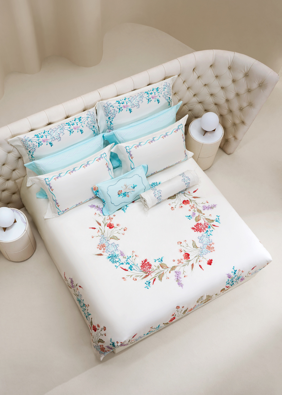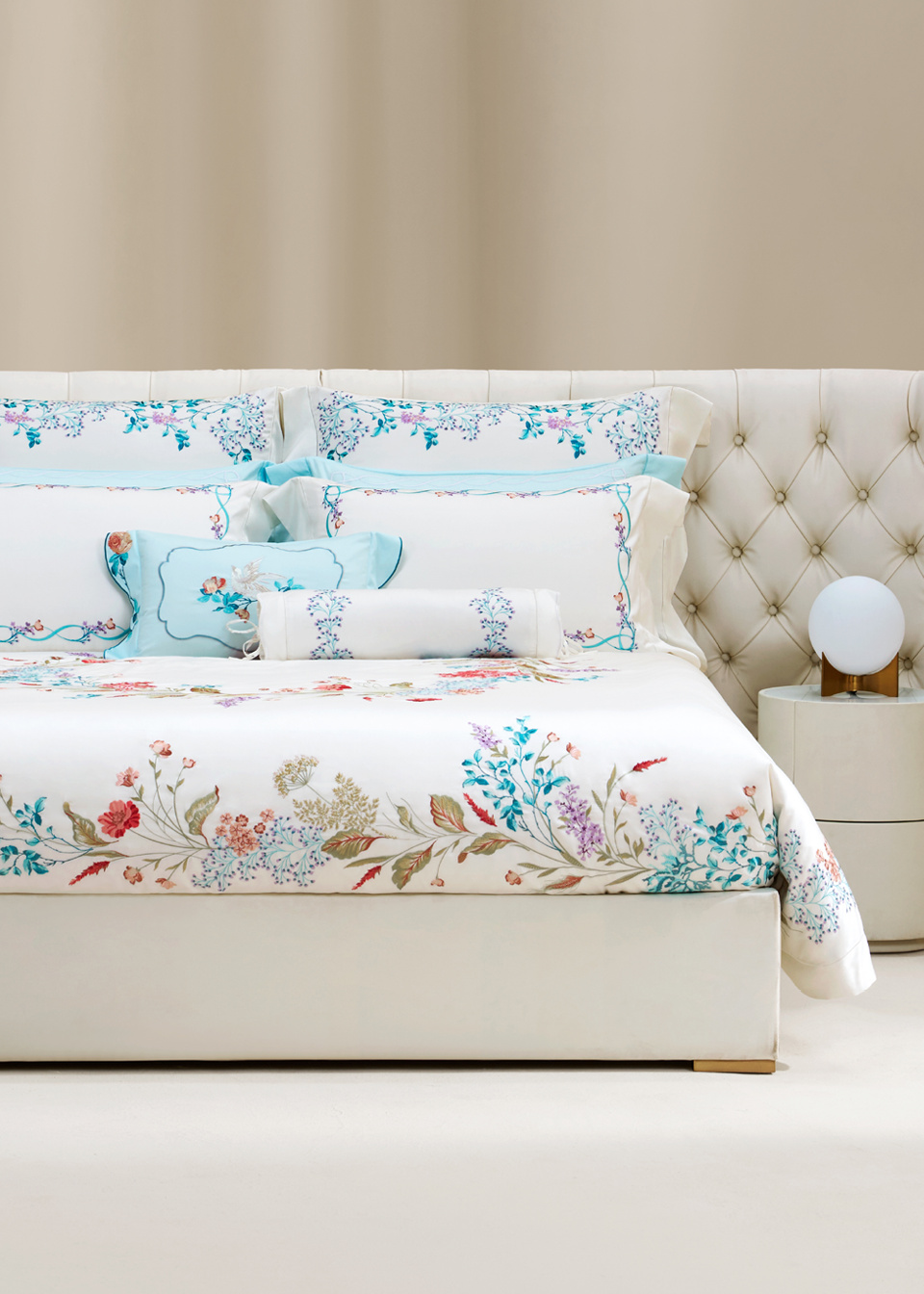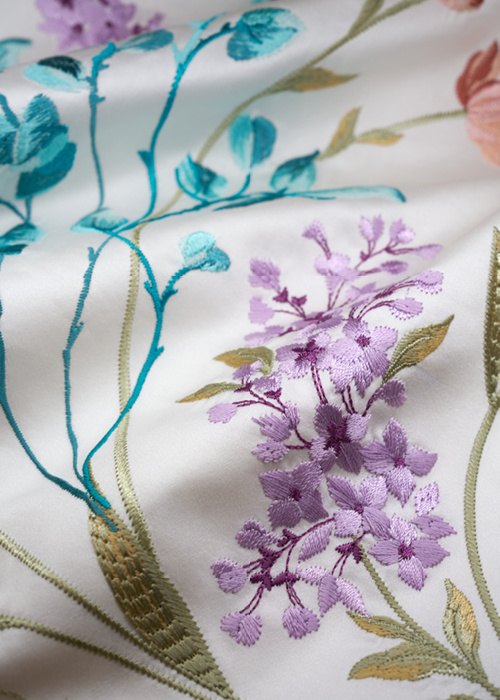 精选100S/2铂丽棉刺绣面料,触感柔滑,品质高端,同时展现刺绣的精致细节与卓越工艺,为居家生活增添奢华气息。