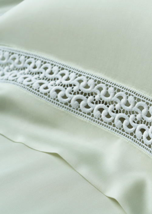 西西里采用简约化的经典卷草枝条设计,结合水溶蕾丝的精致透明感,打造出轻盈唯美的视觉效果,展现了产品的轻盈与优雅。