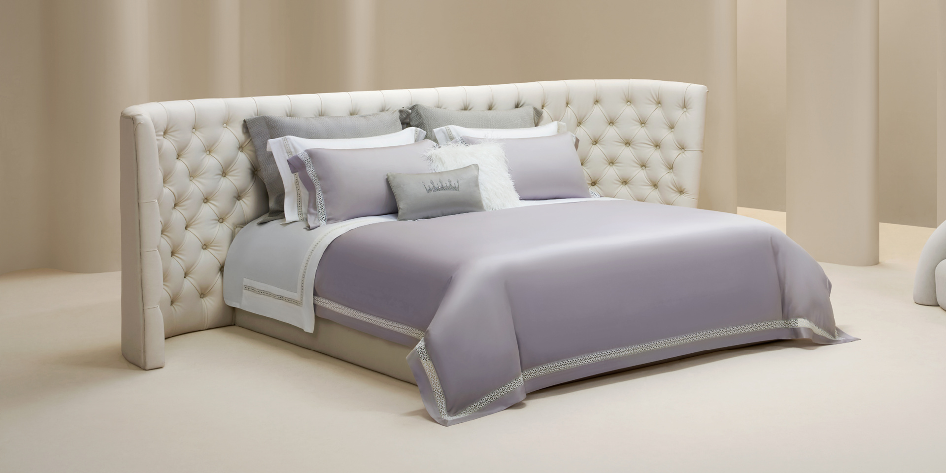 选用淡雅的丁香紫和冷藕粉色,两种色调既高贵又浪漫,兼具知性和优雅,跨越暖冷色界限,提高家居色彩搭配的灵活性和接受度。