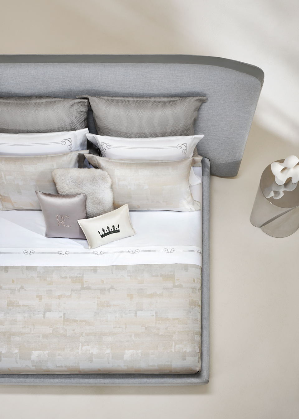 烟灰色、浅驼色、雾粉色与珍珠白等高级色调交织,色彩层次丰富且和谐,呈现出山雾弥漫般的柔和美感,凸显意式格调与高端家居美学。