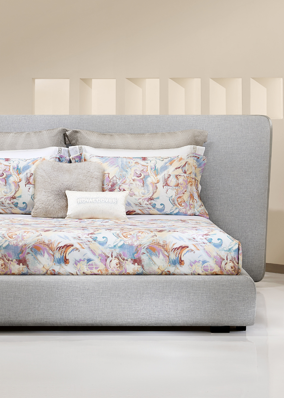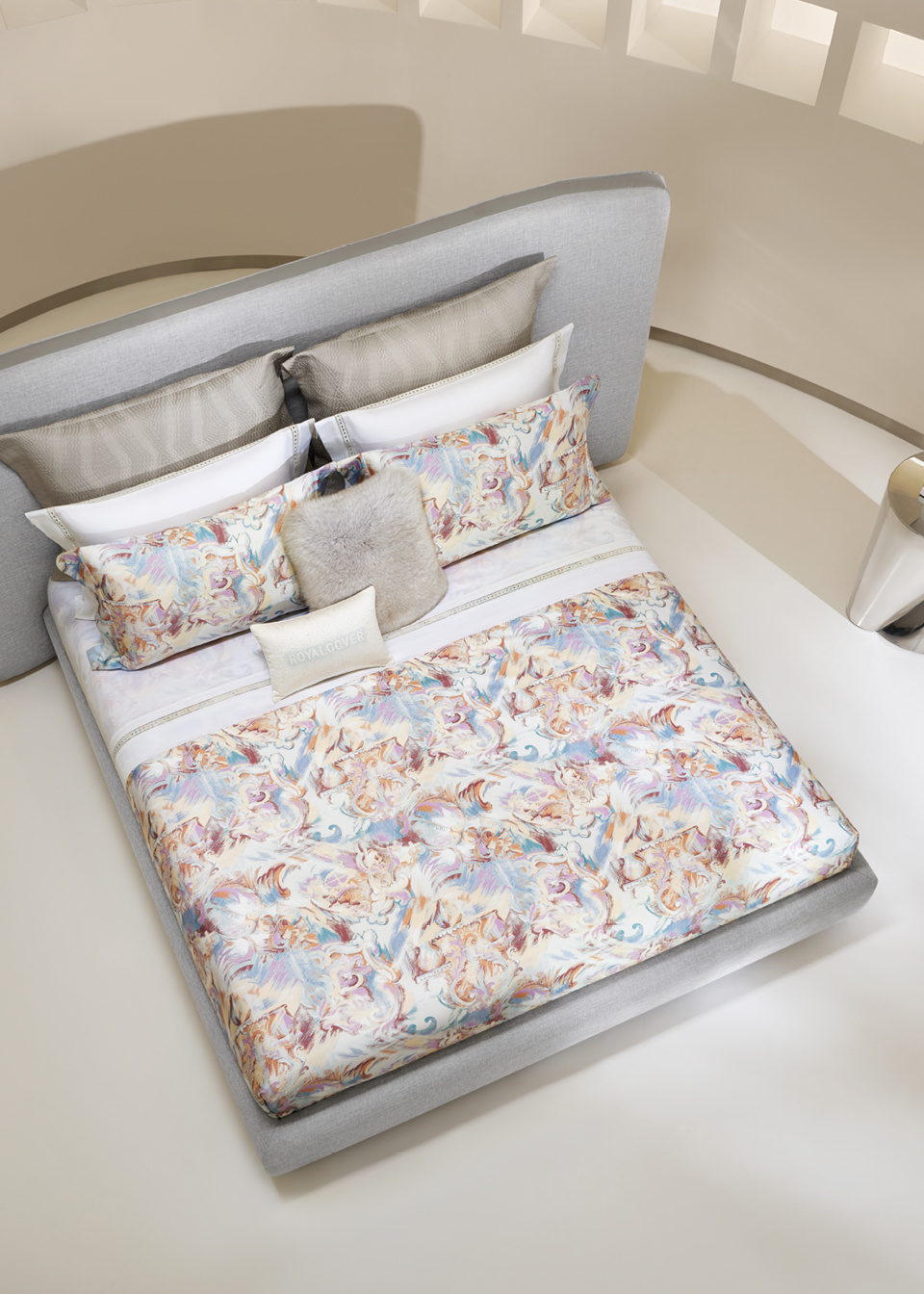 面料采用140支高支高密棉织造,纱线纤细紧密,手感柔软细腻,具备良好的亲肤性与透气性 。搭配先进数码印花工艺,使色彩表现更细腻、层次更丰富,图案清晰立体。为使用者带来既舒适又富有视觉冲击力的寝居体验。