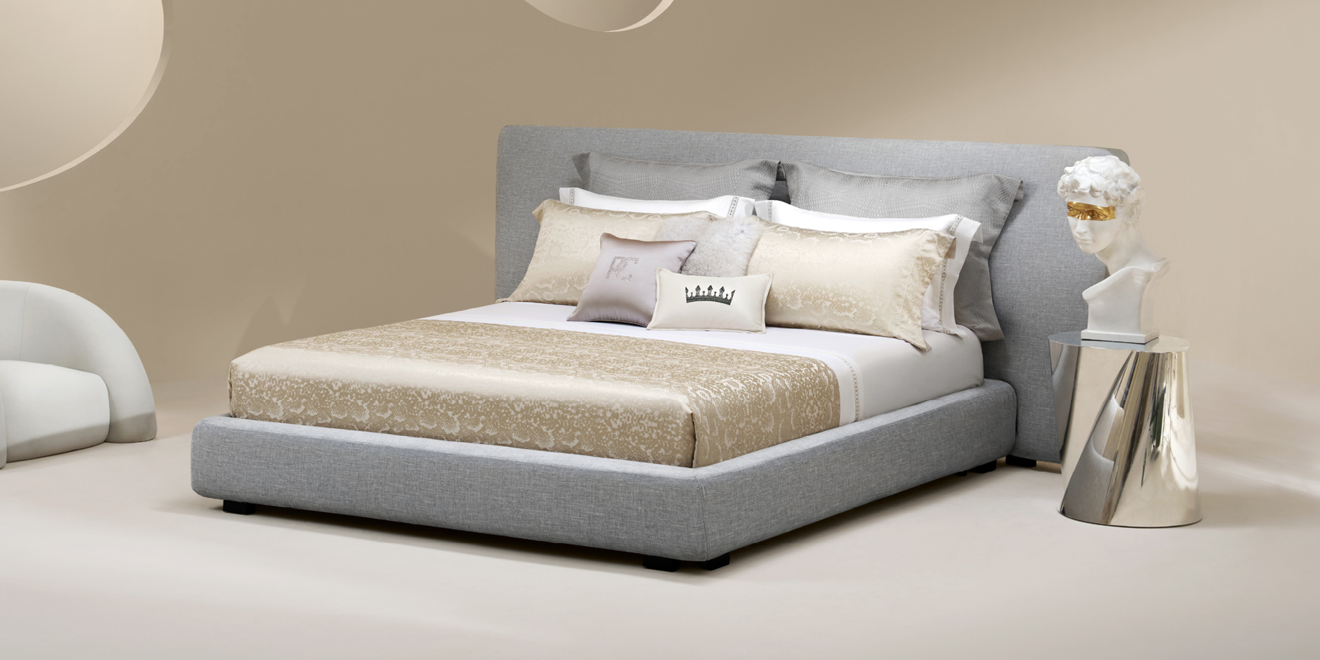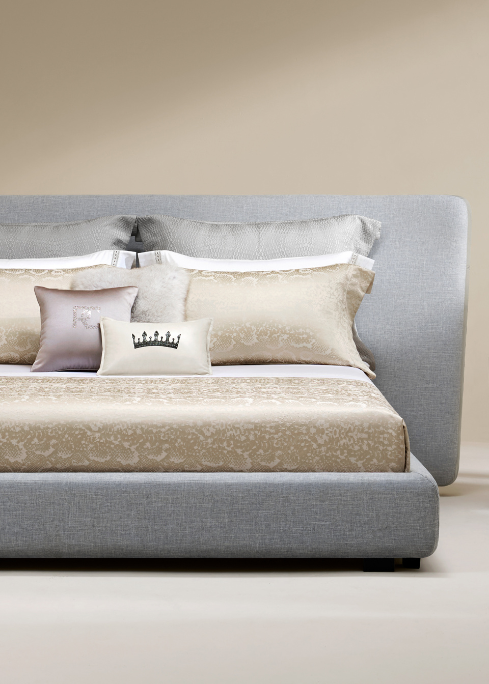 大面积的沙漠金与流沙金深浅交织,高贵与优雅并存,沙漠金色泽金黄富贵,是一种很舒适耐看且带有贵族气息的色彩,夺目且触手可及。