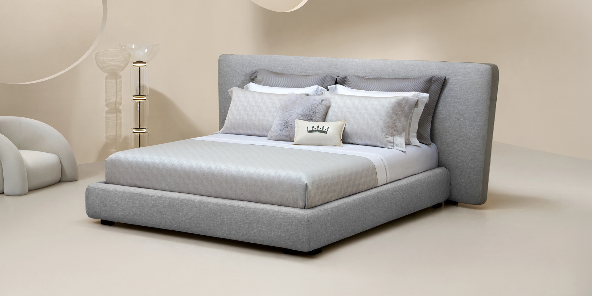 优雅灰色调,介于黑白之间,点缀拱门与波点图案,有一种特别的悠然与空灵,被赋予无限可能性。