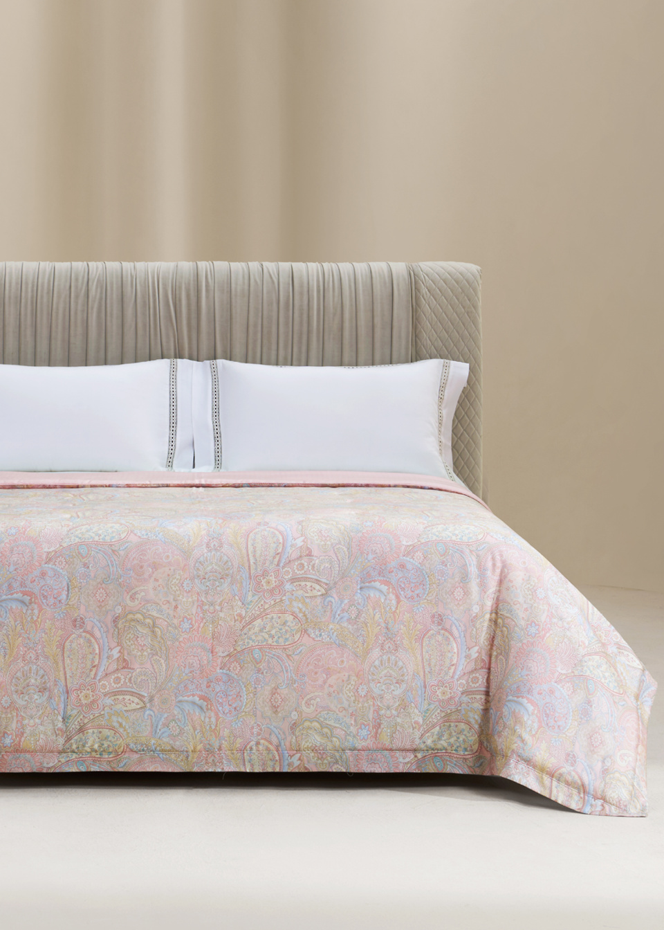 面料采用100%莱赛尔材质,结合印花工艺,展现花卉与佩兹利图案的丰富细节,既柔软舒适,又彰显高端品质,完美贴合肌肤,带来亲肤体验。