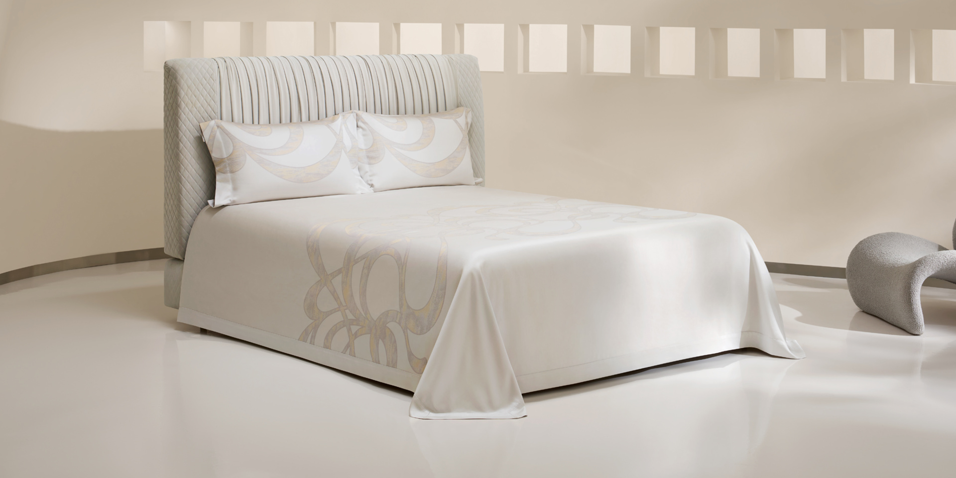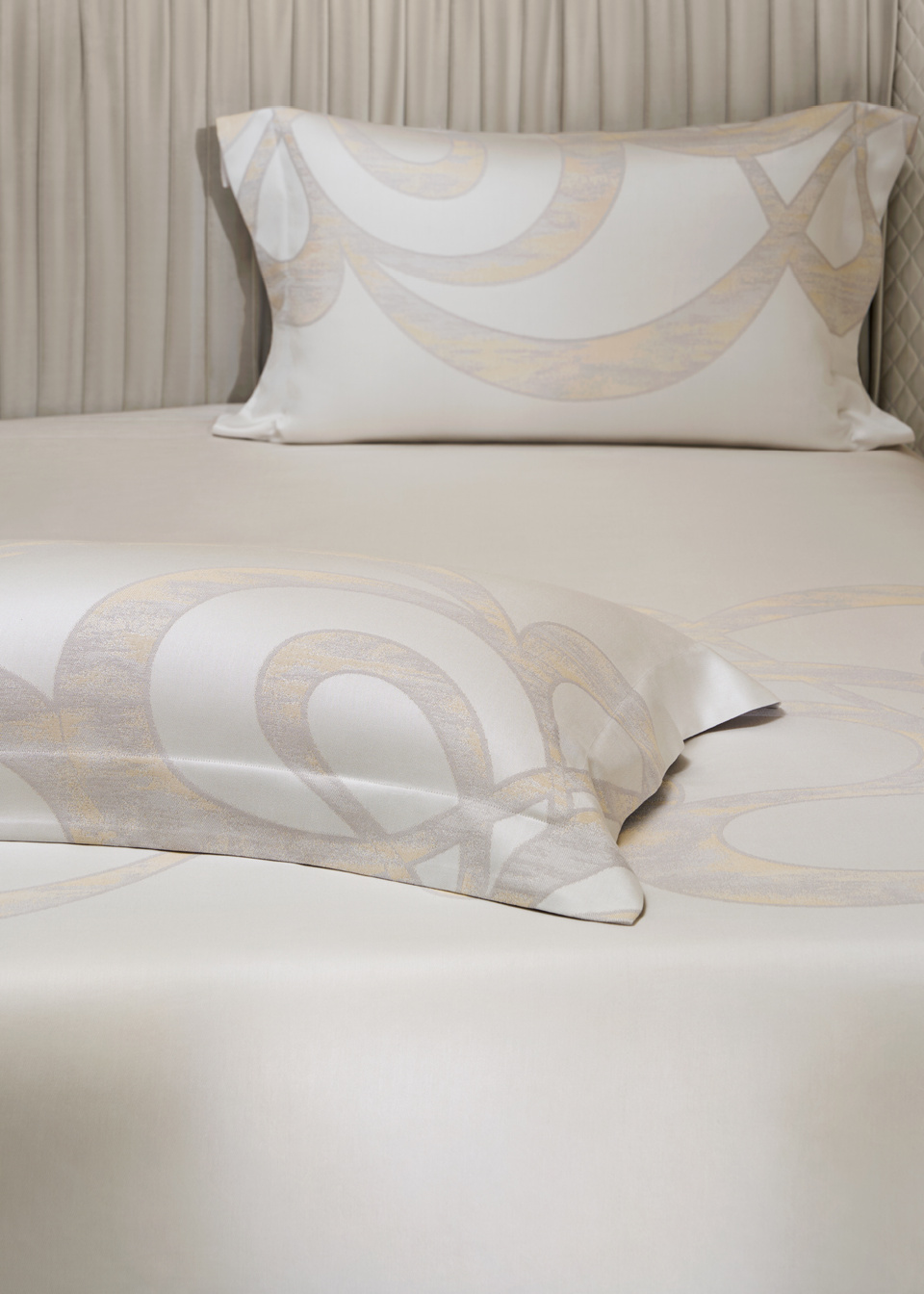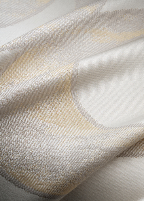 采用罗卡芙独有的双色纬大提花工艺,使花型更具层次与立体感,整体肌理清晰分明,呈现低调却不失华丽的面料质感。