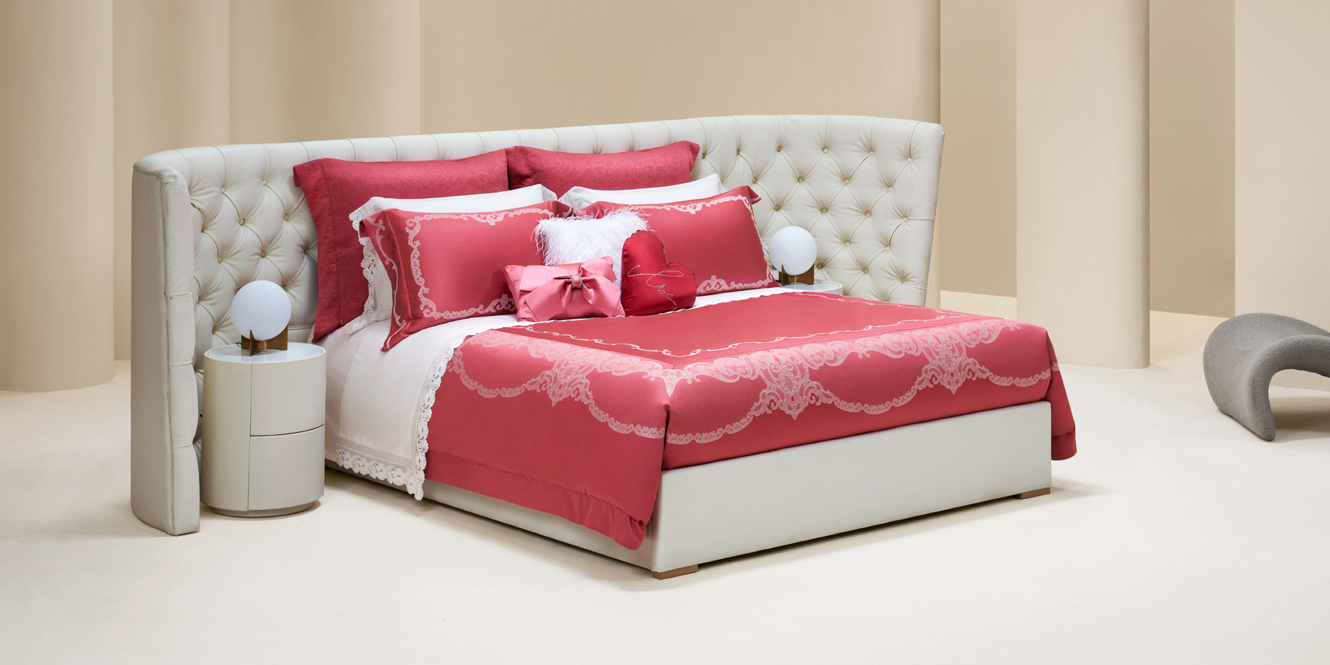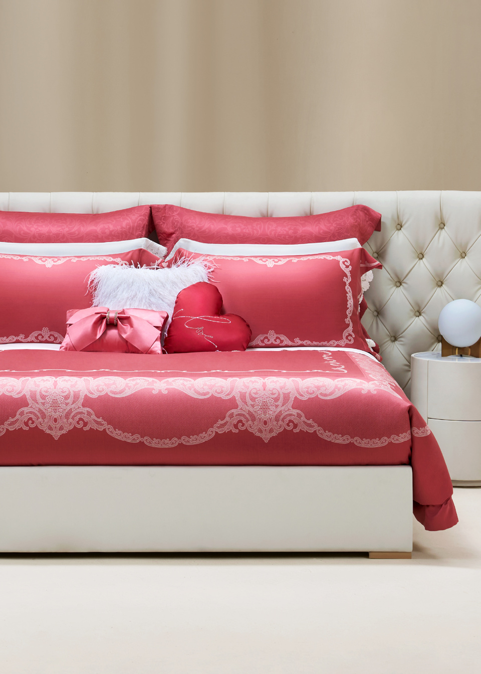红色是性感的颜色,视觉冲击力强。洛可可红,在性感中加入甜蜜,尽显高级的娇俏可爱,浪漫甜蜜又充满艺术魅力,象征永恒的爱意。