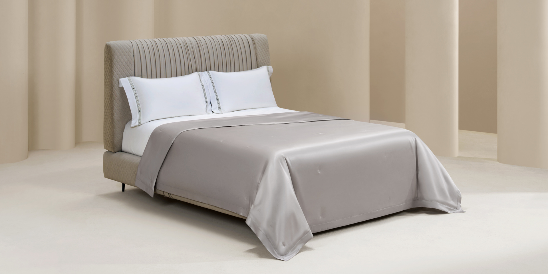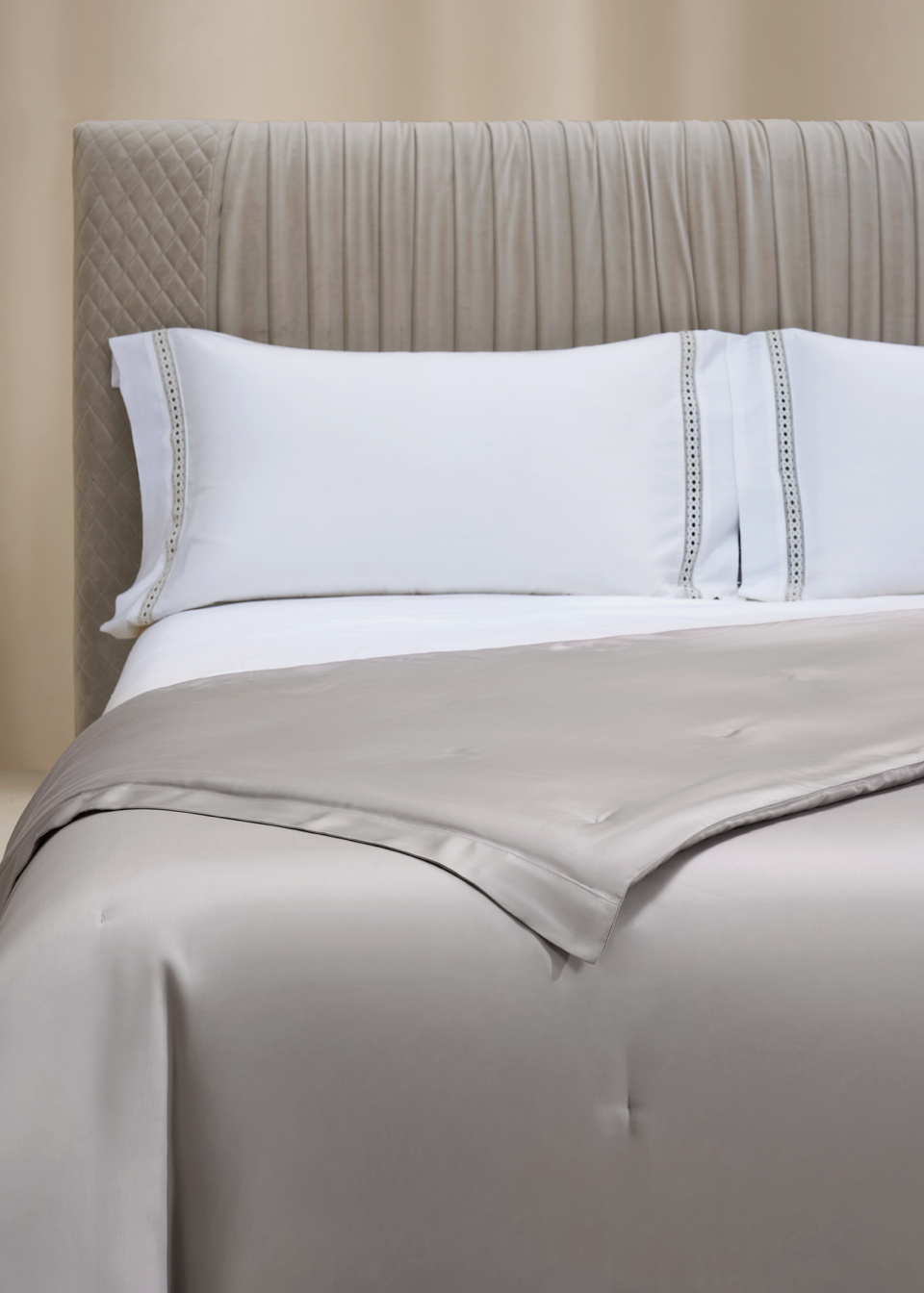 整体设计简约,以素色为主,低调而富有品质感。被角点缀ROYALCOVER绣花,增添一丝精致感,为现代家居增添典雅氛围。