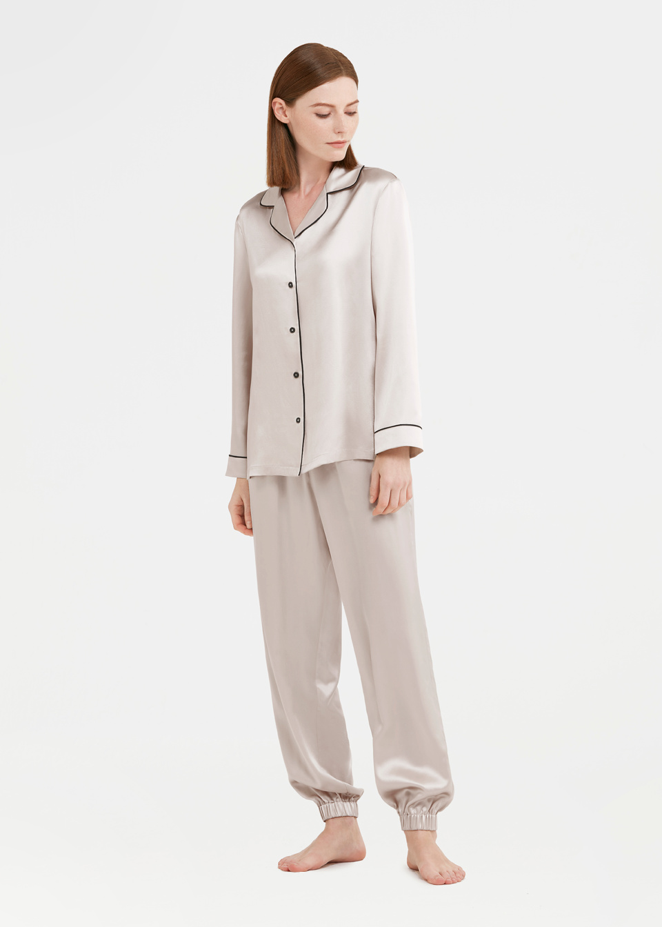 香槟色家居服-黑边上衣-香槟色